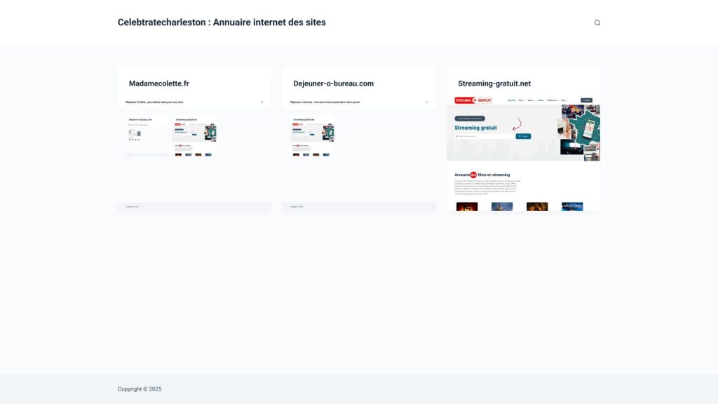 Découvrez CelebrateCharleston, l’annuaire internet des sites incontournable pour explorer la richesse culturelle et digitale de Charleston. Ce répertoire innovant rassemble avec soin une sélection de sites et plateformes locales qui offrent des informations variées, des guides détaillés et des conseils pratiques pour vivre pleinement l’expérience charlestonienne. Chaque entrée vous invite à naviguer dans un univers … Lire la suite de Celebratecharleston.com