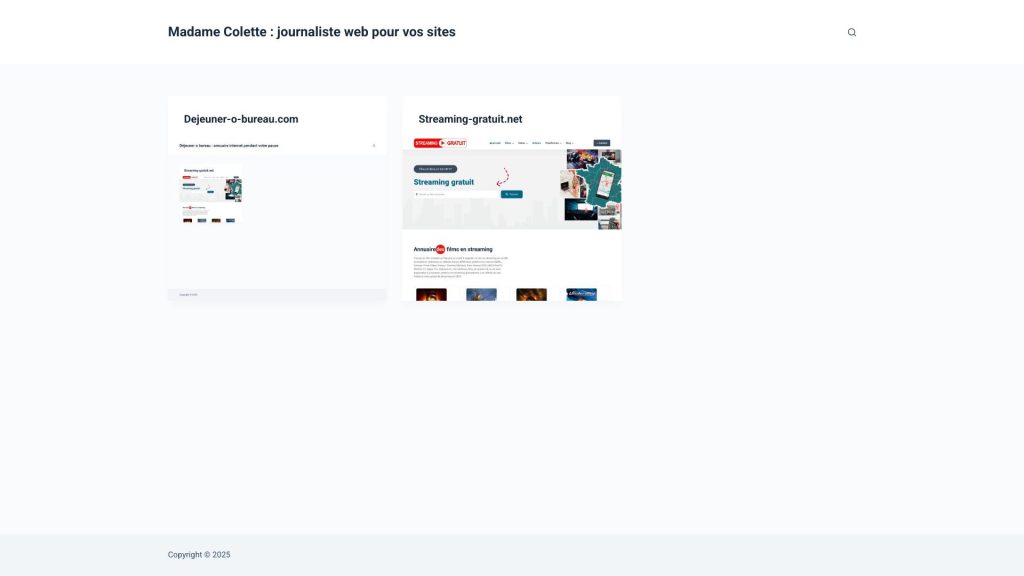 Découvrez l’univers de Madame Colette, journaliste web passionnée dédiée à la création de contenus engageants et optimisés pour booster la visibilité de vos sites. Avec une expertise en rédaction web et une maîtrise des techniques de SEO, Madame Colette propose des articles percutants, des analyses approfondies et des conseils stratégiques qui captivent l’attention. Son savoir-faire … Lire la suite de Madamecolette.fr